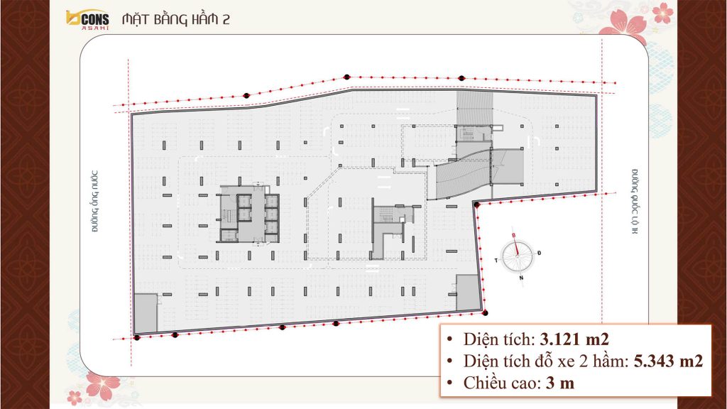 2 tầng hầm: Bố trí lõi thang máy, thang bộ, khu đậu xe, phòng kỹ thuật.