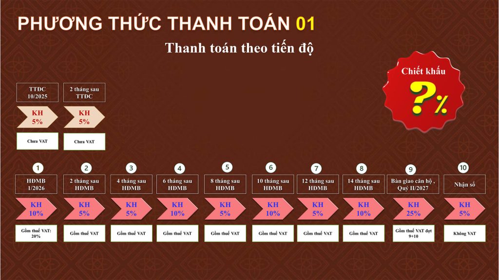 Với đợt bán đầu tiên này thì bạn sẽ nhận được nhiều chính sách ưu đãi cho khách hàng sở hữu như tặng vàng và chiết khấu từ 1-8% tổng giá bán (Mọi chương trình ưu đãi đến quý khách hàng sẽ có thông bán chính thức từ chủ đầu tư sớm nhất)