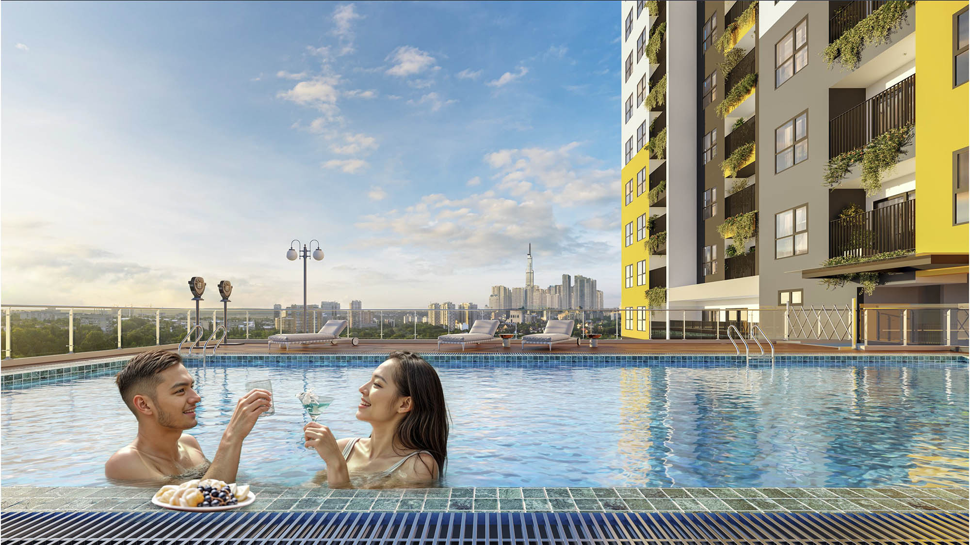Tầng 4: Căn hộ, sân vườn và hồ bơi.
