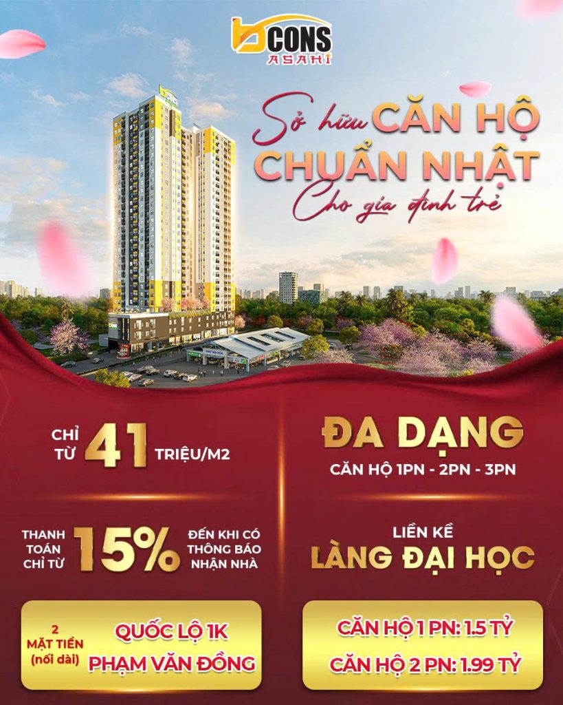 PHƯƠNG THỨC VÀ GIÁ BÁN CĂN HỘ BCONS ASAHI